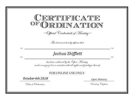 Ordained Minister of Open Ministry Since: 10/04/2018
