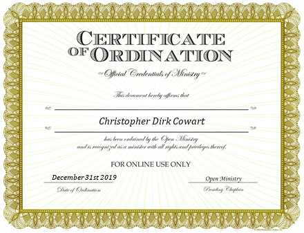 Ordained Minister of Open Ministry Since: 12/31/2019